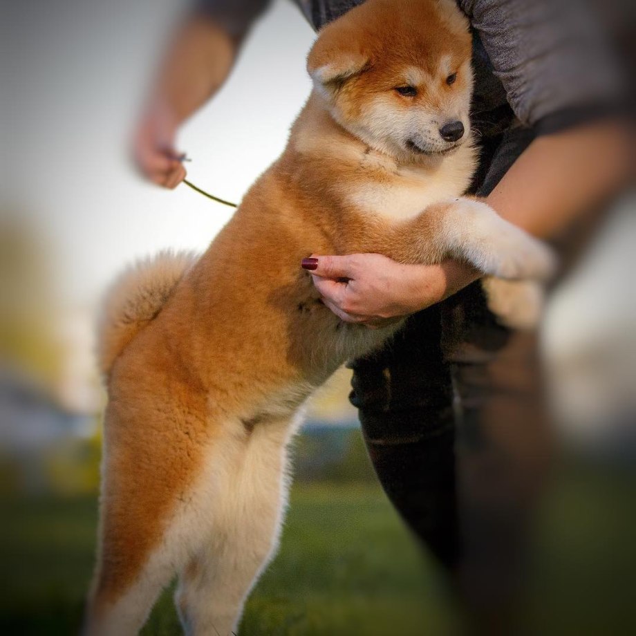 Щенок Акита ину с человеком