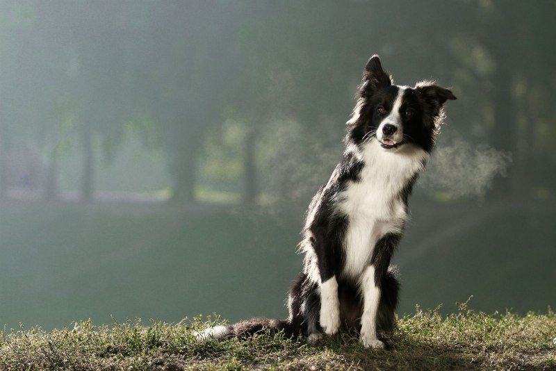 Бордер колли в лесу